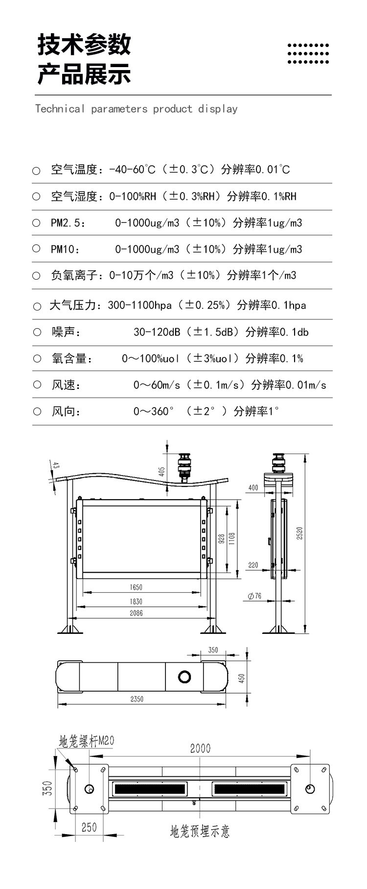 六、高智能負氧離子監測站產品尺寸圖